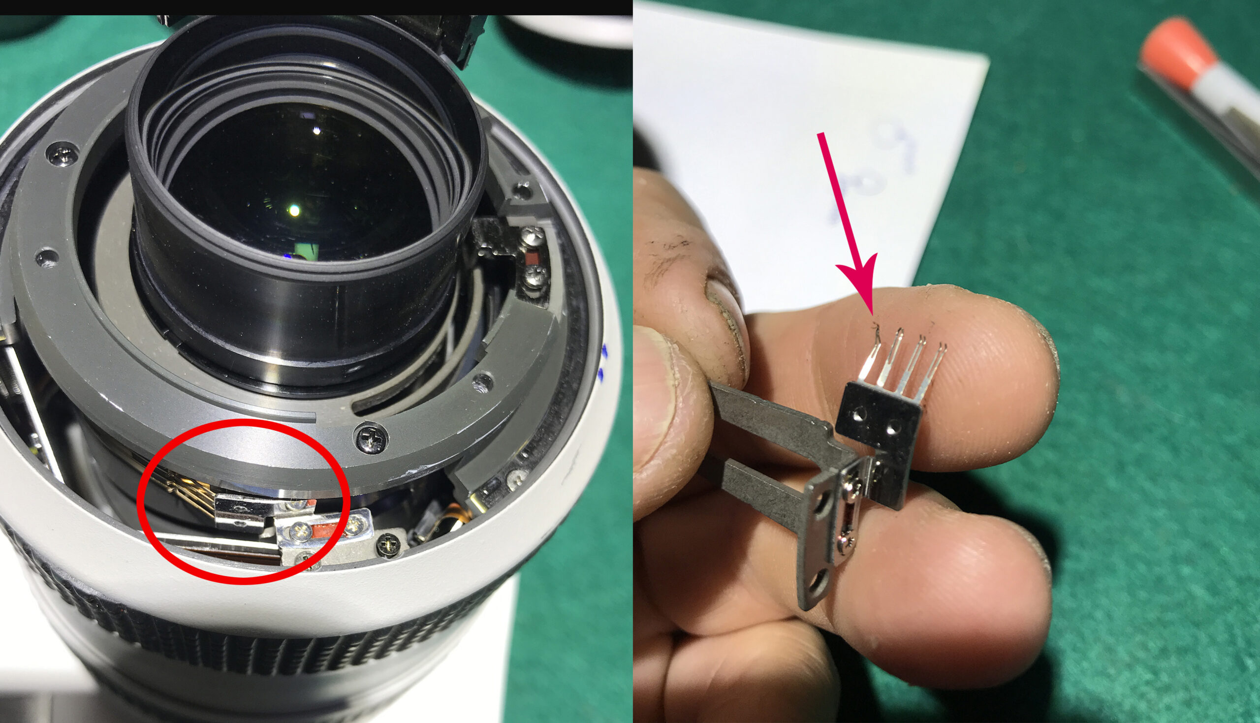 En la primera operación casi me cargo el sistema de medición del zoom. Se me dobló un patín de los que va leyendo las pistas electrónicas, con lupa de relojero y maña pude resolverlo.