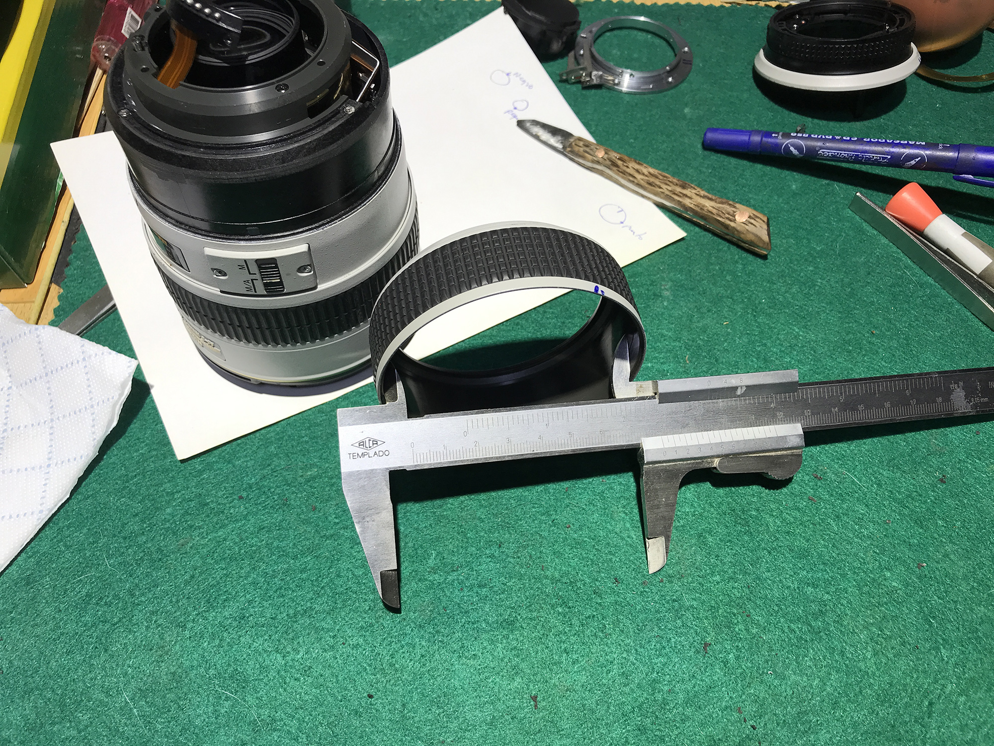 Cómo el problema era que el anillo del zoom se atascaba fui mecanizando, o sea, limando parte del material que molestaba para obtener un giro suave, esto debió hacer que la brida de sujeción y consiguientemente el objetivo en sí, quedara unas milésimas más alejada del sensor.